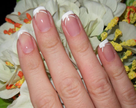 Отже, всі знають, як правильно робити французький манікюр, але ми все-таки нагадаємо цю просту схему. Для початку, нігті обробляються, їм надається форма. Потім покриваються базовим шаром (навіть якщо ви використовуєте звичайний лак не потрібно нехтувати базою, так як вона захищає пластину і дозволяє манікюру довше триматися). Коли база висохне, наноситься нюдовый відтінок (зазвичай ніжно-рожевий, світло-персиковий, близький до кольору шкіри). Цей шар також повинен висохнути.