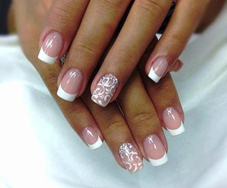 Французький манікюр є основою для багатьох варіантів весільного дизайну. Нареченої обожнюють цю схему, так як нігті виглядають неймовірно ніжними і акуратними.