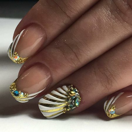 Це безперечно класична схема. Вона йде всім і завжди доречна. Навіть знатні особи, яким за регламентом не годиться носити яскравий або помітний манікюр, часто звертаються саме до френчу. Якщо ви хочете різноманітності, то можете спробувати один з нестандартних видів. Приміром, замінити класичні тілесні і білі кольори на модні відтінки, вибрати елегантний чорний або зовсім кольорову смугу на кінчику нігтя… стразами, намистинами, плівкою або будь-яким іншим елементом декору.