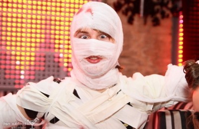 Мумія — ще один скахочный, навіть містичний новорічний костюм! Як його зробити своїми руками? Легко і просто!4 рулону туалетного паперу розкручуємо на себе, місцями залишаючи хвостики, довжиною 20-40 сантиметрів. І невеликі прорізи для очей і рота. Забавно буде, якщо папір різних кольорів, або з яким-небудь малюнком. Будьте смішний і прикольною мумією!