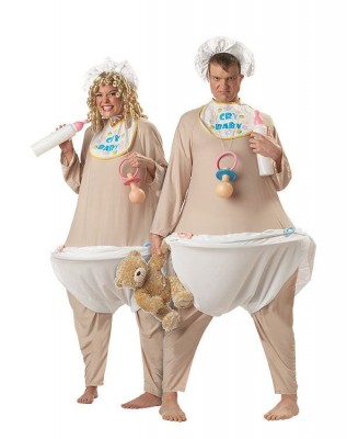 Хочете більше драйву? Шукайте саме незвичайний соктюм на Новий рік? Набридло все відоме і банально? Будь ласка! Купуємо В аптеці підгузник для дорослих необхідного розміру. Пінетки великого розміру, соска. Можна зшити повзунки і чепчик великого розміру. Даний костюм дуже кумедно виглядатиме на чоловікові. Перевоплощайтесь у веселого карапуза і нехай луснуть від сміху!