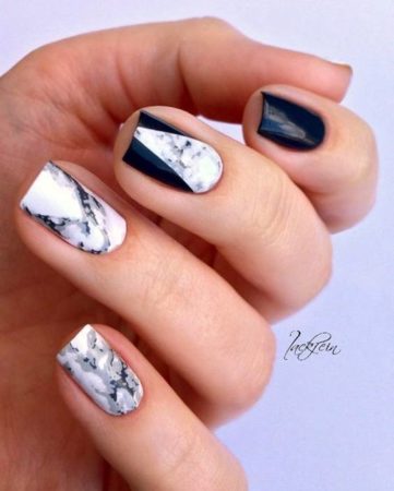 Градації кольору, «мармуровий» малюнок і світловідбиваючі елементи теж вітаються. В такому виконанні гарний манікюр в сірому кольорі може бути і вихідних, і повсякденним.