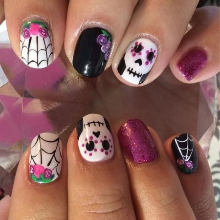 У Голлівуді це свято відзначається особливо яскраво, головна вечірка проходить у Беверлі-Хілз і потрапити на неї мріє кожен. Проте в наших клубах такі вечірки проходять не менш яскраво. Якщо ви вже придумали наряд для Хеллоуїна, підберіть собі відповідний дизайн нігтів для цього свята. Сьогодні ми підібрали 13 ідей дизайну нігтів для святкування Хеллоуїна. Веселого жахливого свята….