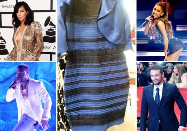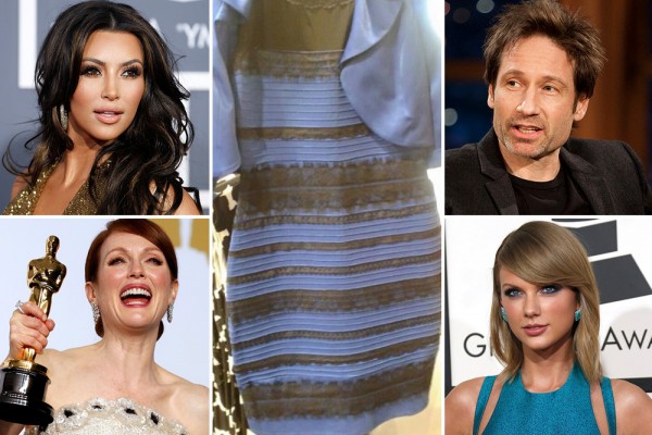 До дискусії долучилися відомі люди: Кім Кардашьян і Джуліанна Мур вважають білим сукню із золотим мереживом, а Каньє Уест, Джеймс Франко і Тейлор Свіфт бачать його синім прикрашеним чорним мереживом. Девід Духовни охарактеризував як синє плаття з зеленим. Опитування знаменитостей організував британський ритейлер Roman Originals Ltd.