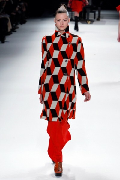 Забарвлення плаща в дусі картин Вазарелі – основоположника оп-арту. Ілюзія створює враження, що предмет одягу зроблений з об’ємних геометричних фігур.