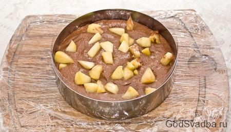 Основною ж частиною начинки є мус і яблука. Давайте почнемо з того, що простіше. Яблука потрібно помити, очистити від шкірки і видалити серцевину, після нарізати на невеликі кубики. Наші фрукти ми підсмажимо. На сковороді розтоплюємо вершкове масло, висипаємо кубики фруктів і приправляємо цукровою пудрою з корицею. Ретельно все перемішуємо, доводячи яблучка до стану золотавості. Вони не повинні розпадатися, а тримати свою форму. За бажанням і на цей етап додається ром. Його виливають на сковороду і підпалюють. Після чого яблука читаються готовими, відкидаємо їх на друшляк і чекаємо остигання.