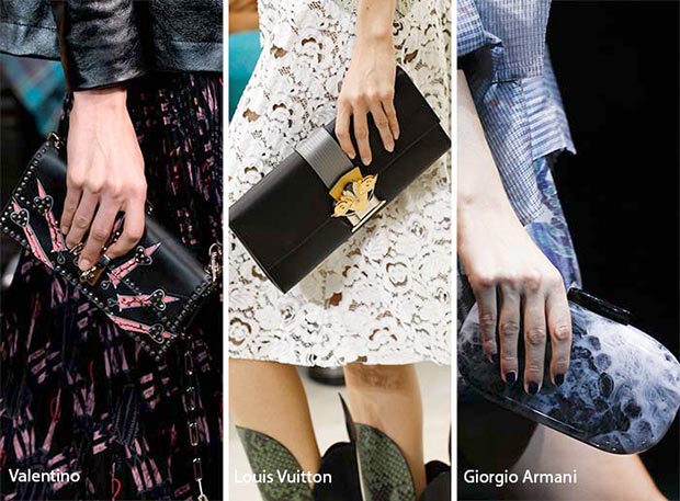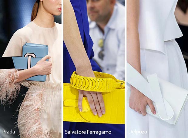 Клатчі Stella McCartney прийняли форму маленьких квадратних кишеньок, в той час як у Prada, вони були незграбними, завдяки видимим блискавками і великим квітам.