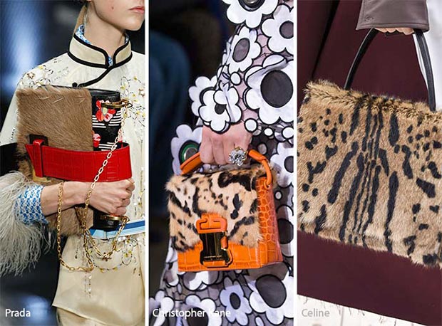 У той час як одні дизайнери включають у свої колекції сумки з твариною принтом, інші вирішили дотримуватися виключно натурального хутра тварин. PETA зазвичай не шанувальники шкіряних сумок, але люблять хутро не менше за інших. Незважаючи на це, тваринний малюнок і сумочки з деталями з хутра потрапляють в список актуальних тенденцій жіночих сумок весна-літо 2017.
