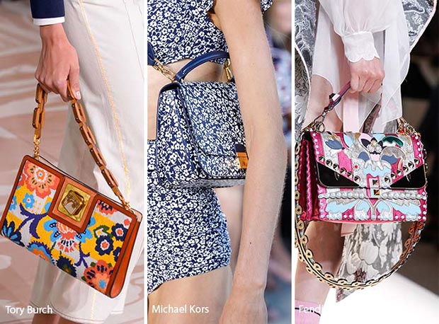 У колекції Tory Burch, ми побачили сумки-коробки в пастельних тонах з флористичним візерунком, який був виконаний у модних традиціях 60-х. Michael Kors вирішив запустити гаму різних квіткових варіантів, у тому числі з аплікаціями з шкіри в аналогічному відтінку, що і сама сумочка.
