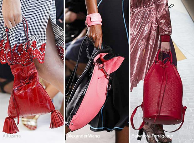 У Delpozo, ми побачили сумку конструкції, що нагадує медузу – напівпрозору, блискучу, з опалесцирующим блиском. На тлі інших, також виділялися сумки від Trussardi, виконані в пурпурному, червоному і бірюзовому відтінках з металевим відливом, відмінно підходять для літа 2017.
