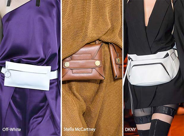 На показі Kenzo, стегнах сумки були зроблені так, щоб відповідати поряд. Вони були в різних інтерпретаціях, але самим вражаючим був графічний, мерехтливий, чорний, сріблястий і пурпурний варіанти. У Стелли Маккартні вони, можливо, більше походили на пояси з кишенями, ніж на окремі вироби.