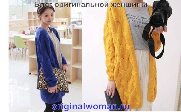 Створити богемний спосіб допоможе модний вязаний кардиган 2017, довжиною до підлоги. Модель кардігана середньої довжини з відкладним коміром здатна замінити жакет в офісі, зробити образ впевненої в собі леді більш м’яким і ніжним. Для того, що б зробити силует ще більш вишуканим, тонкий кардиган необхідно зафіксувати на талії тонким ремінцем.