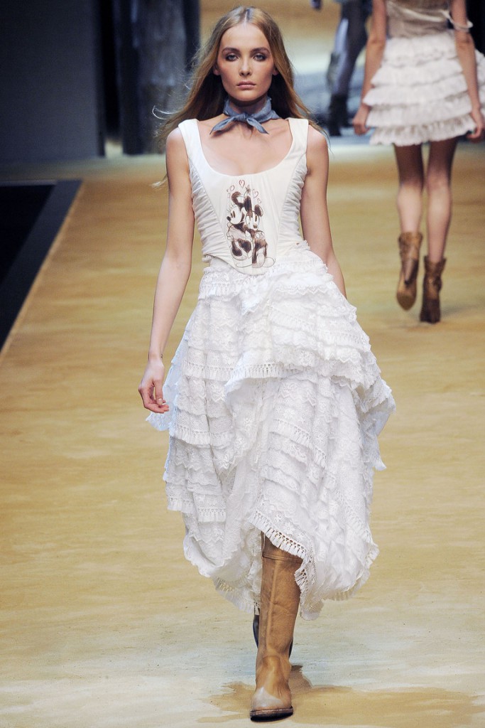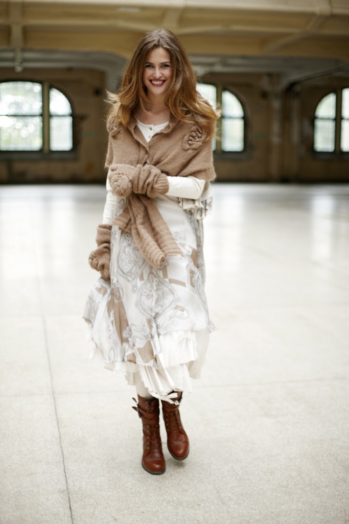 - Що стосується взуття, то вона повинна бути зручною. Це означає, що ніяких підборів і вже, тим більше, гострих шпильок. Взуття використовується з натуральних матеріалів. Оскільки одяг справляє враження ніжності й легкості, то на контрасті можна вибирати грубі черевики або масивні сандалі.