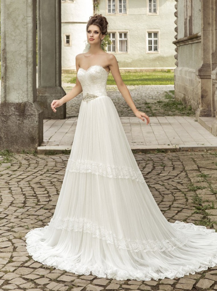 - Подоли суконь і спідниць зазвичай розкльошені, часто багатоярусні. Це ж стосується і якщо ви вибирається вбрання для нареченої в стилі Прованс.