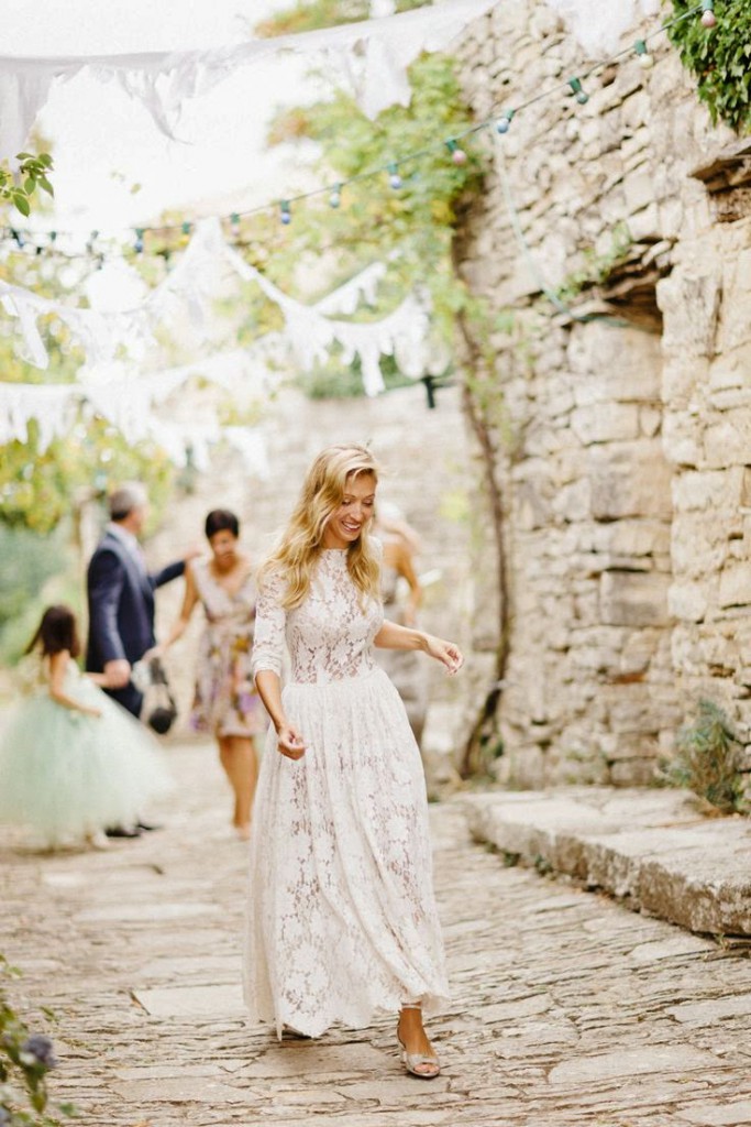 - Зараз дуже актуально грати весілля в прованському стилі. А до такої весіллі потрібен і відповідний наряд нареченої. У цьому випадку вибирається романтичне довга весільна сукня з мереживом.