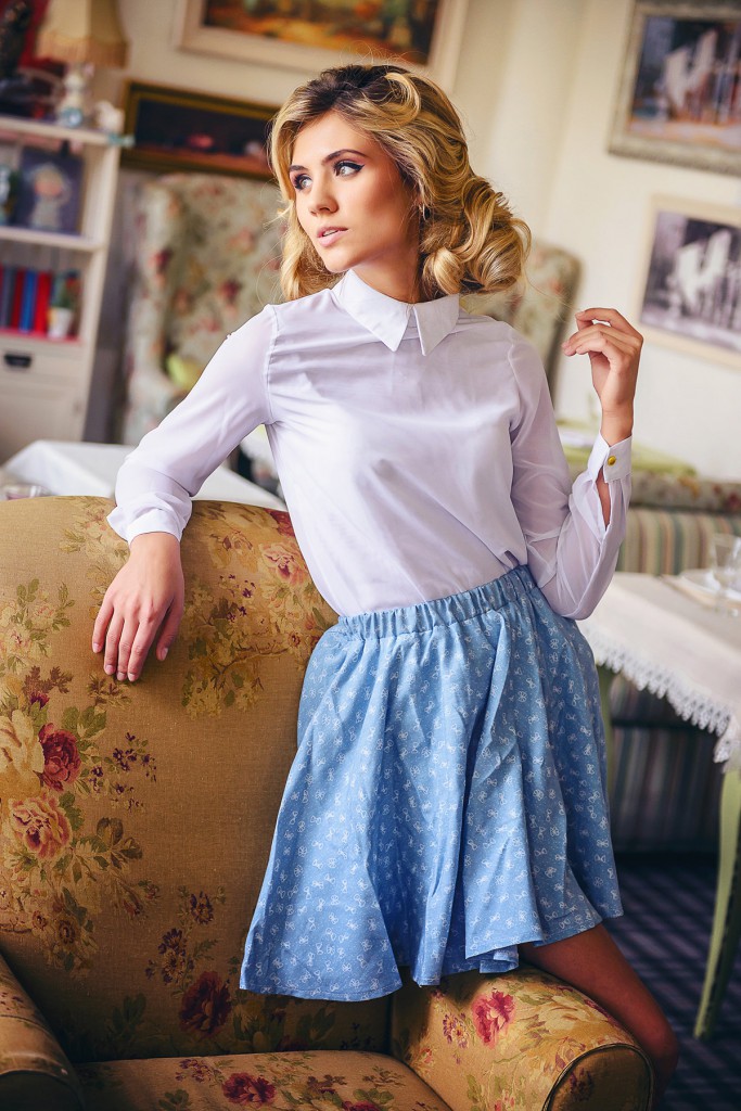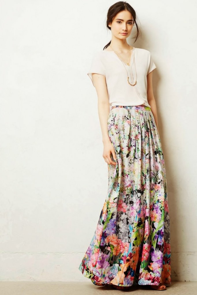 - Відмінний спосіб для прогулянки: довга світла спідниця з ярусами в поєднанні з джинсової сорочкою. Сорочка теж повинна бути вибіленого відтінку. Доповнити образ допоможе тонкий світло-коричневий ремінець і легкі шкіряні чобітки.