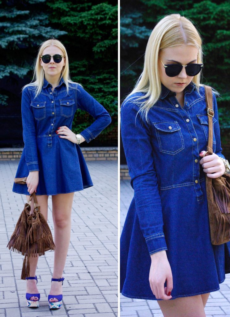 Міні-спідниця з джинсової тканини і яскрава футболка жовтого кольору – бездоганний дует. Під вбрання підійдуть лакові босоніжки з ніжним бантом. Візьміть з собою невелику білу сумочку на тонкій ручці синього кольору. Ніжно-рожева туніка чудово підкреслить романтичність даної події. Під неї потрібно надіти нейтральні білі або кремові лосини й босоніжки на платформі синього кольору. Не забудьте взяти сумочку через плече рожевого відтінку.