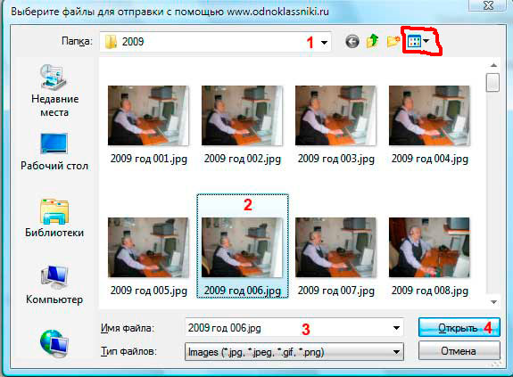 вибрати фотографії для завантаження на сайт odnoklassniki.ru