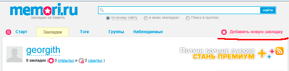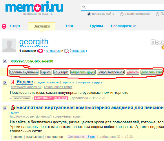 ви опинитеся на своїй сторінці в сервісі соціальних закладок