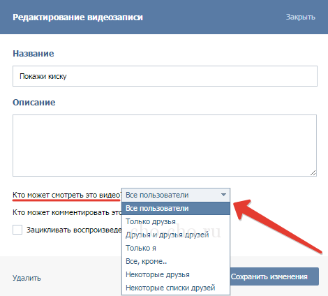 Це дуже зручна функція. Вона дозволяє не тільки відкрити і приховати відеозапису, але і виставити індивідуальні налаштування. Так доступ до відео може бути тільки в одного вашого друга або відразу в декількох.