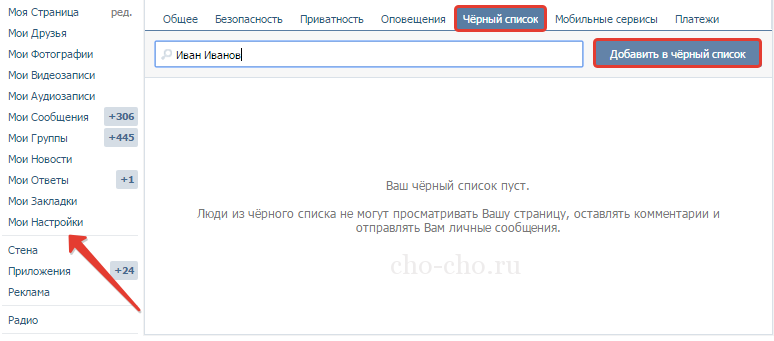Втім, один спосіб цілком і повністю приховати свій профайл Вконтакте все-таки існує, але досить кардинальний. Це чорний список. Відправити в нього користувача можна так:
