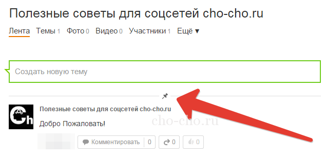 - закріплена публікація — запис, яка весь час буде перебувати першою серед інших публікацій у групі. Це зручно, щоб скласти оголошення для нових учасників, коротко повідомити про діяльність групи, тримати цінну інформацію весь час на виду, а так само використовувати для реклами, конкурсів і оголошень;