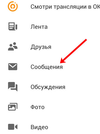 Якщо ви використовуєте мобільний додаток Однокласники і хочете відправити другу відео особистим повідомленням з телефону або планшета, зробіть наступне. Відкрийте програму і виберіть в бічному меню пункт «Повідомлення».