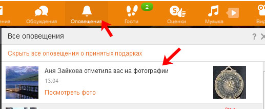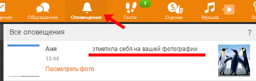 Після того, як ви відзначите одного на фото в Однокласниках, у нього на сторінці з’явиться сповіщення.
