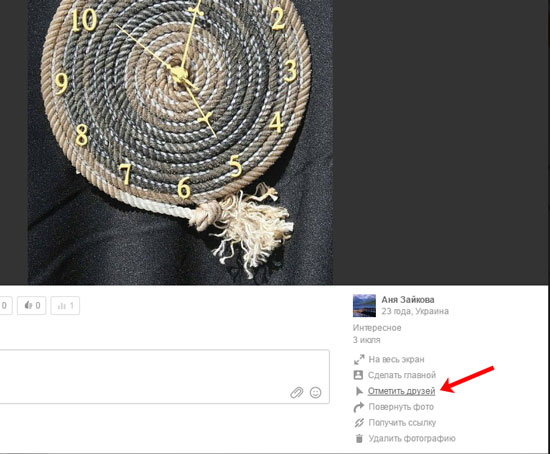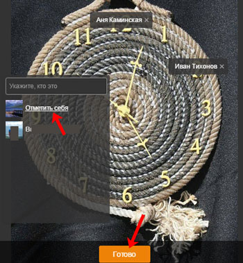 Якщо ви переглядали фотографії на сторінці свого друга і побачили себе на знімках, то ви самостійно можете поставити позначку зі своїм ім’ям.
