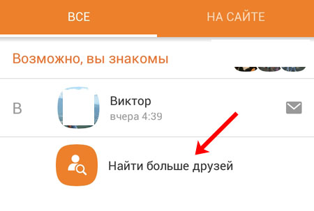 І ще один цікавий спосіб, як можна додати друзів в Однокласниках з телефону, натисніть «Знайти більше друзів».