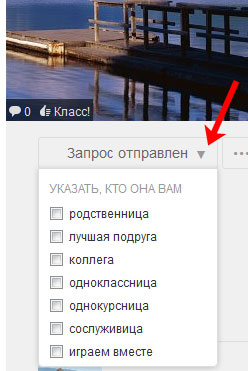 Запит буде відправлений. Можете навести курсор мишки на цю кнопочку і вибрати, ким ця людина доводиться вам зі списку. Якщо нічого не підходить, не ставте галочку. Тепер інша людина повинен підтвердити, що ви з ним друзі.