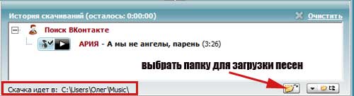 Внизу програми ви побачите інформацію про завантаженої пісні. А точніше шлях, де її можна знайти. Крім того, ви зможете змінити папку для завантаження пісень за замовчуванням.
