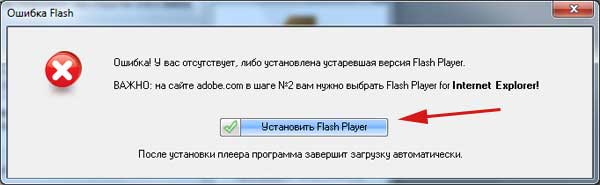 Якщо у вас встановлена стара версія Flash Player, то, напевно програма вам про це нагадає. Без новій версії вона не працює. Також читаємо у віконці, яке вискочило, що Flash Player має бути саме для браузера Internet Explorer.