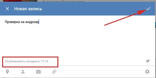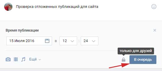 Знаходимо місце на сторінці, де ми зазвичай пишемо свої записи і створюємо публікацію. У мене це буде просте речення: «Перевірка відкладених публікацій для сайту».