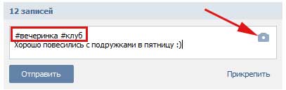 І так, спочатку запису можна написати кілька хэштегов, які будуть передавати сенс всієї запису (це не обов’язково робити саме спочатку). Після цього ми пишемо текст і можемо додати ще фотографію, натиснувши на іконку фотоапарата. Після, можна натиснути на кнопку «Відправити»: