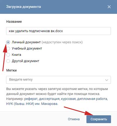 Чекаємо, поки завантажитися документ і відкриється ще одне віконце. У цьому віконці вибираємо тип документа «Особистий документ». Якщо поставити налаштування таким чином, файл не буде видно і доступний для пошуку іншим користувачам.
