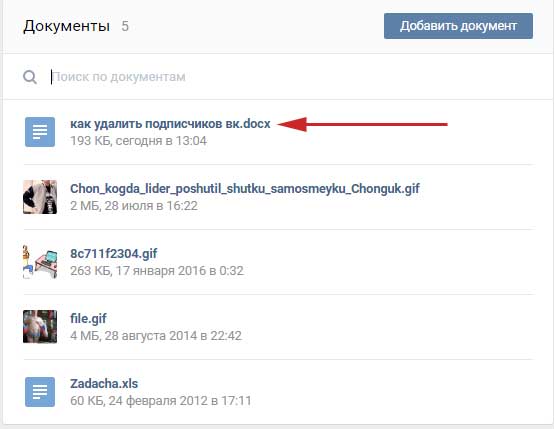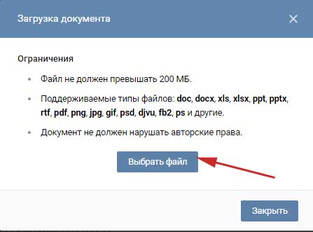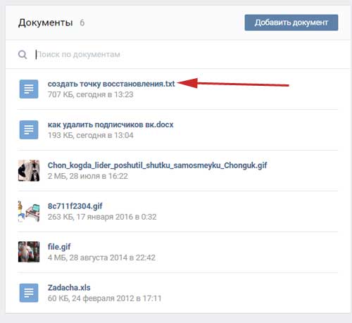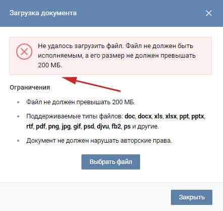 Завантажуємо в документи Вконтакте отриманий файл. Система його пропустить: