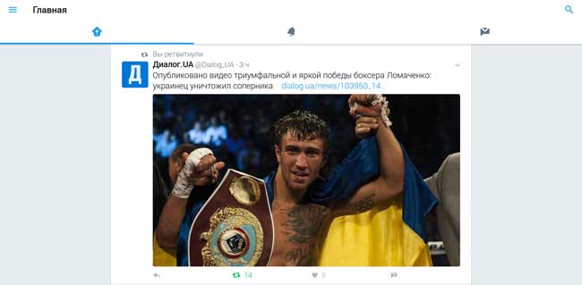В результаті ми отримуємо на своїй сторінці дві новини (ретвіти). Звичайний ретвіт відображається від імені облікового запису власника з його ж миниатюркой.