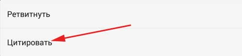 Ми також можемо обрати з випавшого меню виберіть пункт «Цитувати». Що це ми вже знаємо з першого пункту нашої статті. Це той же самий ретвіт тільки з додаванням вашого коментаря. Давайте спробуємо натиснути.