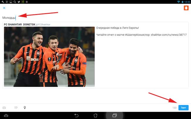 Як зробити ретвіт в мобільному додатку на Андроїд