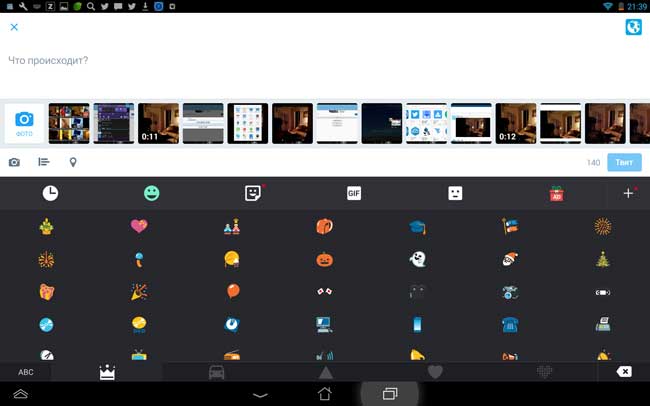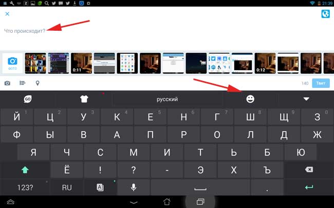 У додатку Твіттера для смартфонів і планшетів також відсутні смайли, тому нам доведеться встановити клавіатуру на своє Андроїд-усройство, на якій ці смайли присутні. Досить подібно я писав про встановлення та налаштування такої клавіатури у статті «Як вставити смайлик в Instagram». Відкрийте і почитайте.