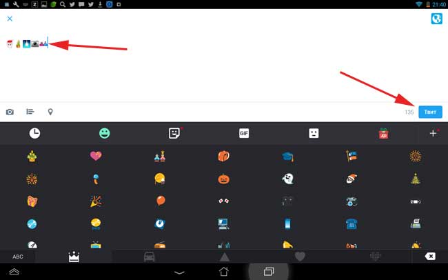 Як додати смайлик в твіттер з телефону на Андроїд.