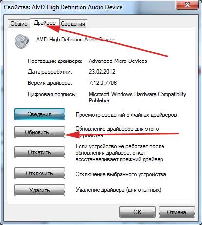 Також, можуть бути проблеми з драйвером мікрофона. У диспетчері пристроїв клацніть два рази по мікрофону і спробуйте оновити драйвер: