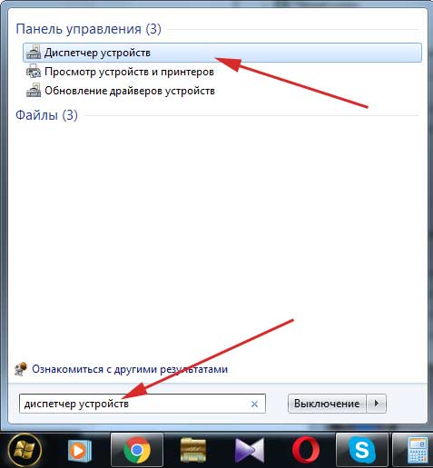 Щоб перевірити, чи бачить його операційна система чи ні, зайдемо в диспетчер пристроїв. Для цього тиснемо на кнопочку «Пуск» і в пошуку задаємо відповідний запит:
