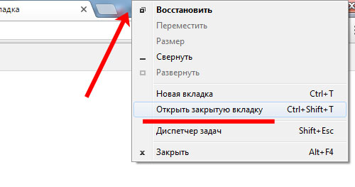 Ще один спосіб швидко відновити закриту вкладку в Хромі. Для цього потрібно клікнути правою кнопкою миші по панелі з відкритими вкладками.