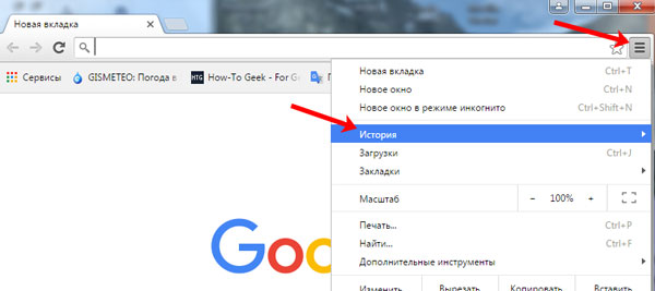 - 2 Відновлення закритих вкладок в Google Chrome за допомогою історії