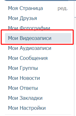 - Заходимо на особисту сторінку ВК і переходимо в розділ з відео, клацнувши на посилання «Мої відеозаписи».