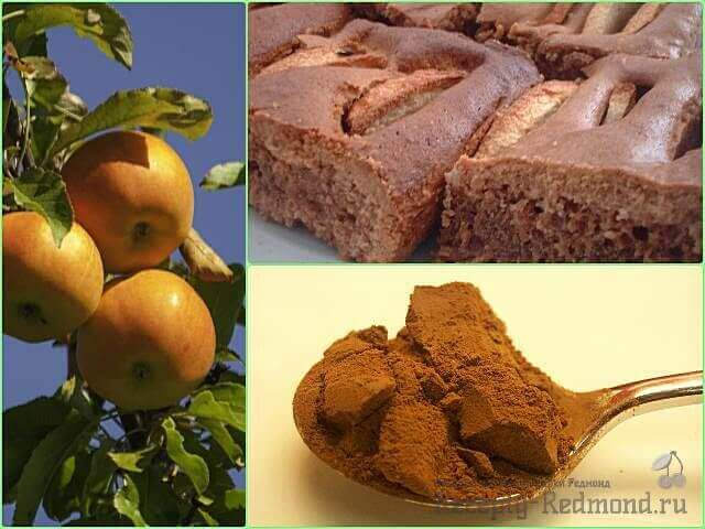 Другою відмінністю цього рецепта виступає те, що в тісто і яблучне пюре (воно викладено посередині шарлотки, між двох шарів тіста) додано також какао. В результаті пиріг вийшов приємного коричневого кольору, і виглядає як магазинний, тобто дорого 🙂