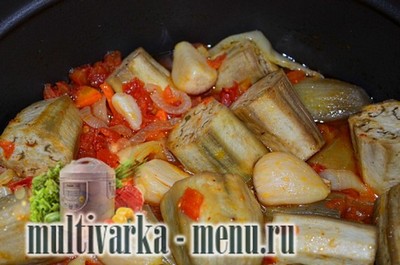 Натискаємо кнопку “Овочі” і виставляємо кнопкою “Меню” мінімальний час гасіння. Закриваємо диво – каструлю кришкою. Готувати баклажани будемо протягом 20 хвилин.