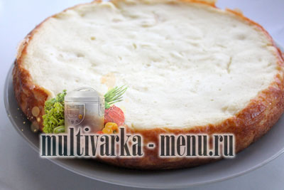 Після того, як пролунає звуковий сигнал про завершення роботи, сирна запіканка з манкою і грушами готова! Дати їй трохи охолонути в чаші, а потім акуратно за допомогою кошика-пароварки (та, що додається в комплекті з мультиваркою) витягти її і перекласти на тарілку.